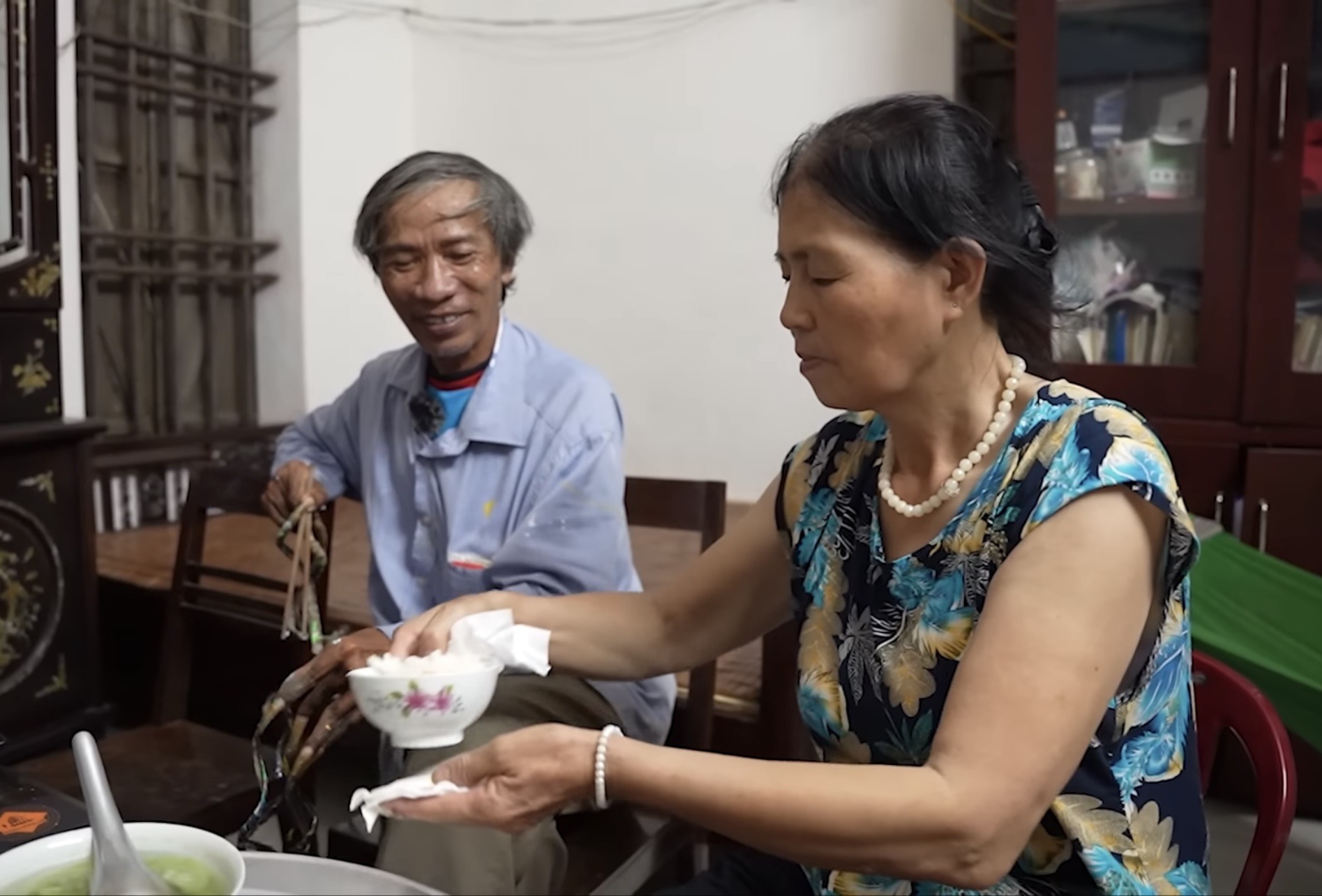 Bà Thuận trở thành đôi tay của chồng khi hàng ngày theo ông Huyền đi làm, hỗ trợ ông đánh vữa, pha màu, cầm màu,... Khi đi làm về, ông chỉ ngồi một chỗ, còn bà Thuận đi nấu cơm, giặt giũ, dọn dẹp nhà cửa. Đến bữa cơm, bà gắp thức ăn vào bát, đưa bát cho chồng. Rồi cả việc hỗ trợ ông đi vệ sinh, tắm rửa, gội đầu, gãi ngứa, mặc quần áo cũng đều do bà Thuận lo hết.