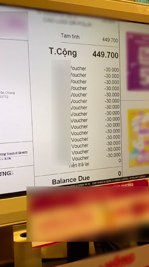 Cụ thể hơn cho những ai không biết tới hình thức này: Siêu thị cô mua hàng có một ứng dụng trên điện thoại, cho phép người mua đăng ký thành viên và tích luỹ voucher giảm giá sau mỗi lần mua hàng, hoặc được tặng trong các dịp đặc biệt. Voucher có thể ở dạng mã QR trên ứng dụng, hoặc là giấy cứng phát bên ngoài. Khi thanh toán, siêu thị cũng cho phép cộng dồn các mã giảm giá. Vậy nên sau một thời gian dài tích luỹ, cô gái đã có số voucher trị giá hơn 450k, đủ để giảm giá toàn bộ hoá đơn vừa xong.