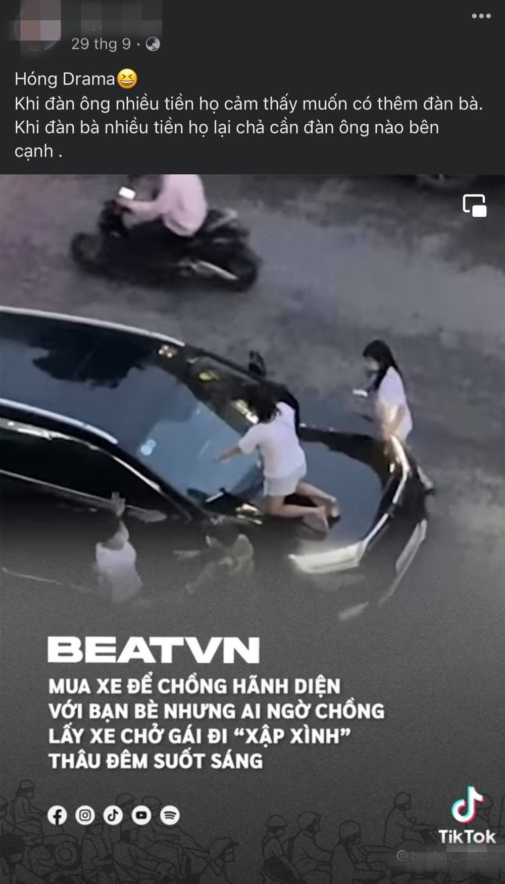 "Hóng drama. Khi đàn ông nhiều tiền họ cảm thấy muốn có thêm đàn bà. Khi đàn bà nhiều tiền họ lại chả cần đàn ông nào bên cạnh".