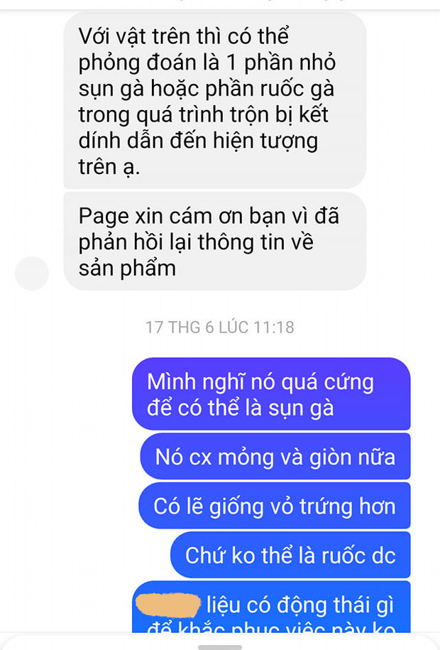 - “Mình thì nhìn ra miếng sụn, nhưng nếu là vỏ trứng thì cũng chứng minh một điều là họ dùng trứng thật, không phải hương liệu giả. Đôi khi khuất mắt trông coi thôi bạn ơi”.