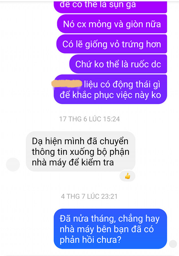 - “Họ cũng là nhân viên tiếp nhận thông tin và đã nhắn là báo lại nhà máy rút kinh nghiệm rồi, giờ bạn muốn họ phải xử lý sao nữa? Nửa tháng vẫn ghim trong lòng thì mình thấy bạn bắt bẻ quá rồi”.