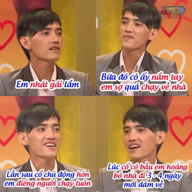 "Đến cái nắm tay em cũng phải là người chủ động, lúc đó chồng em sợ quá nên giật tay ra xong chạy thẳng về nhà. Tới lúc hôn nhau em cũng là người chủ động tiếp, hôn xong cái là anh ấy bỏ chạy luôn" - Huỳnh Như hào hứng kể lại.