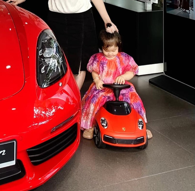 Bên cạnh đó, 1 phần sự chú ý của dân mạng cũng dồn về cô con gái Sam Sam. Khi mẹ đang mải mê chụp ảnh bên xế hộp tiền tỉ thì nhóc tì cũng thích thú cưỡi lên chiếc "siêu xe" mini cùng thương hiệu và màu sắc với ô tô của mẹ.