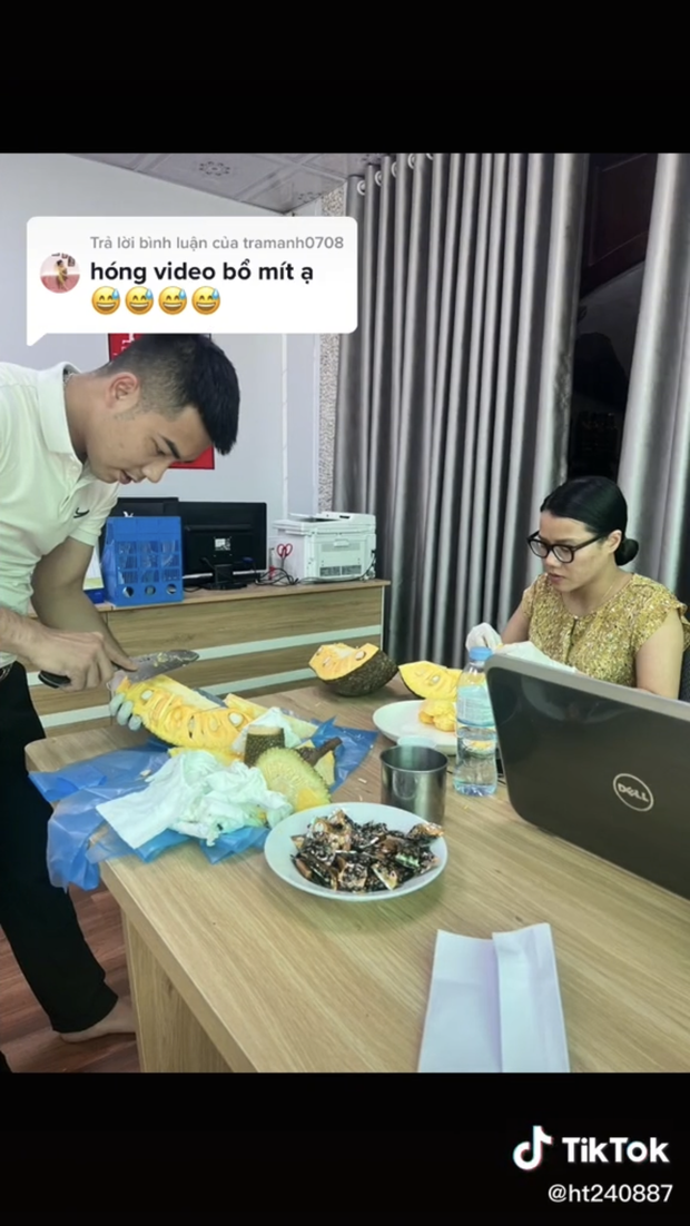 Đáp lại ưu ái này, cây mít cũng ra rất nhiều quả, nhìn hình ảnh nhân viên trong văn phòng vui vẻ bổ mít ăn ngay tại "nơi sản xuất", cộng đồng mạng vô cùng tán thành việc chủ văn phòng quyết định không đốn cây khi xây dựng căn nhà.
