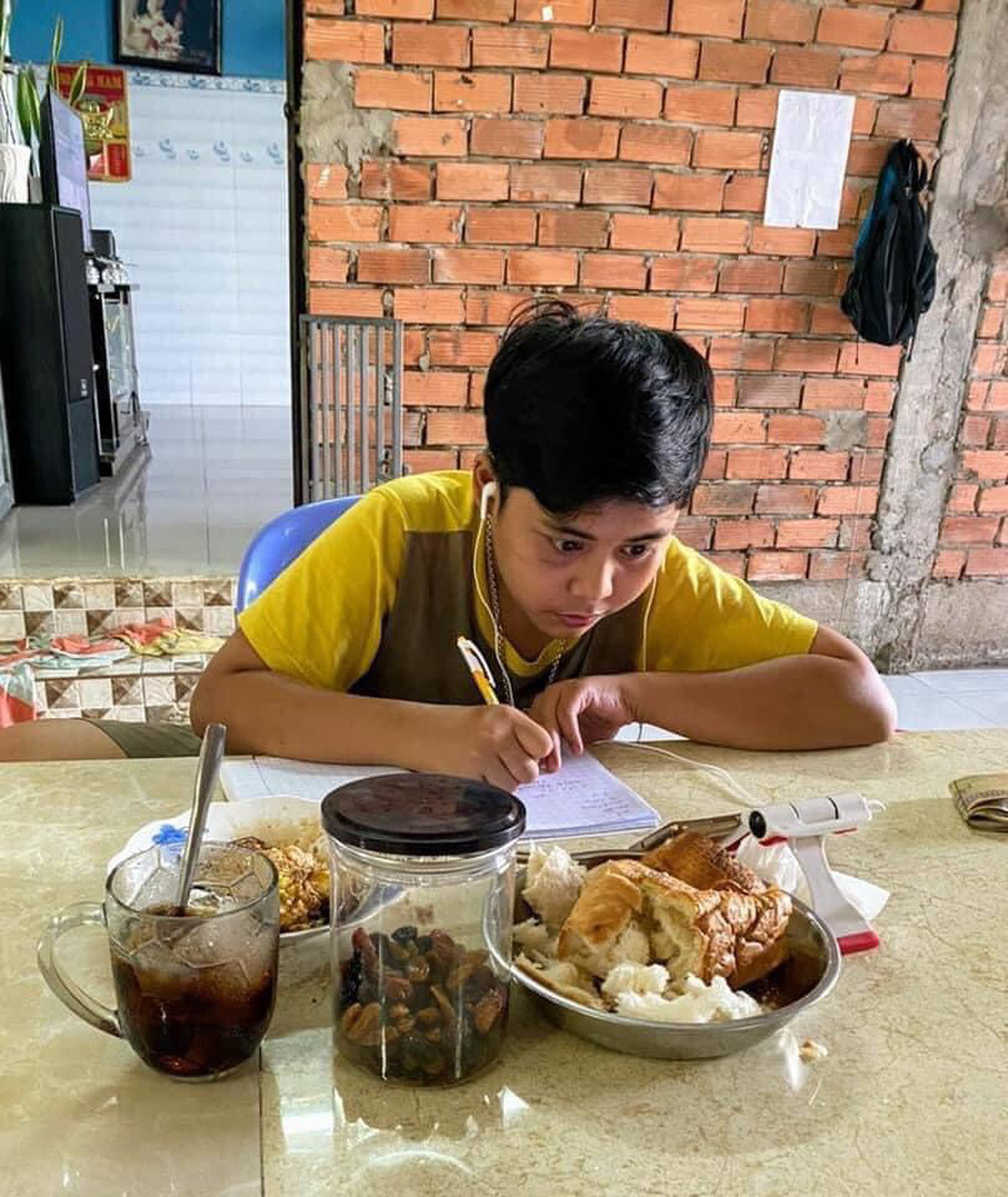 Tuy nhiên, chất lượng học tập theo quan sát của anh chàng vẫn đảm bảo: "Cháu mình học cũng chăm chú lắm, thỉnh thoảng kêu đau vai mỏi cổ vì ngồi lâu nhưng vì mới học nên thế, ít bữa nữa bé sẽ quen thôi".