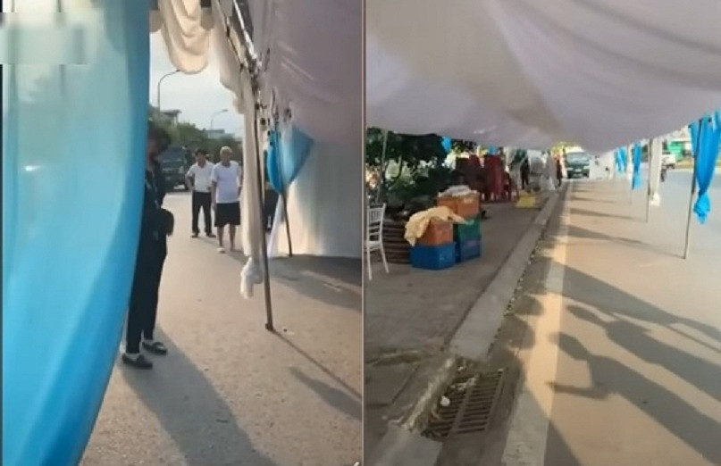 Chị Nhật Hà (Hà Đông, Hà Nội) cho biết, tình huống dựng rạp chiếm lòng đường, vỉa hè xuất hiện thường xuyên tại nơi chị sinh sống.
