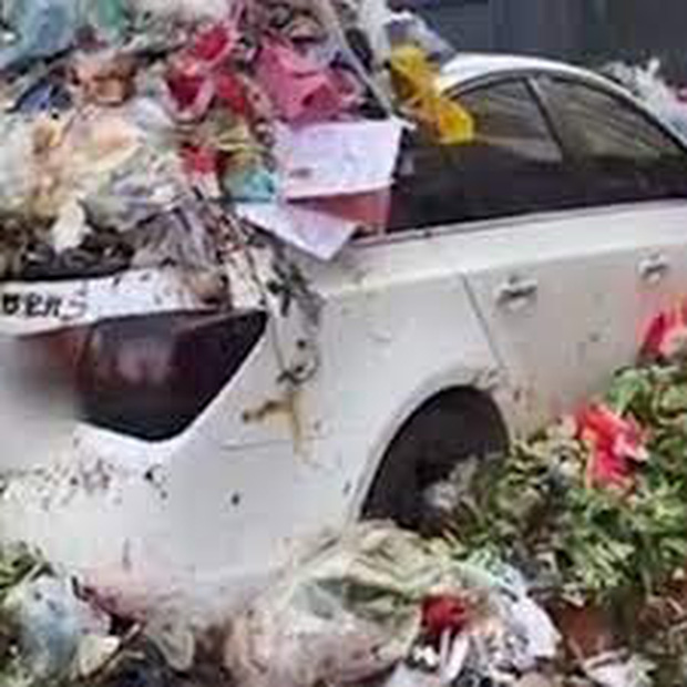 Được biết, đoạn video về một chiếc ô tô bị bao quanh bởi rác đã trở nên viral trên mạng xã hội Trung Quốc ngày hôm nay. Người quay video, cô Shi, cho biết buổi sáng cô đi vứt rác thì thấy chiếc xe ngập trong rác rưởi hôi thối.