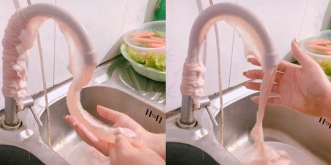 24/08/2020 22:48Đoạn video clip cô gái bày mẹo xỏ ruột heo vào vòi nước rồi xả nước để rửa sạch gây tranh cãi