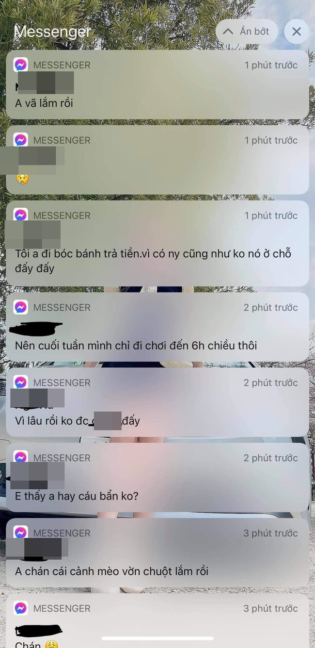 "Anh chán cảnh mèo vờn chuột lắm rồi. Em thấy anh hay cáu bẳn không vì lâu rồi chưa được 'giải tỏa' đó. Nên cuối tuần mình chỉ đi chơi đến 6 giờ chiều thôi. Tối anh đi 'bóc bánh trả tiền' vì có người yêu cũng như không nó ở chỗ đấy đấy. Anh 'vã' lắm rồi", chàng trai viết.