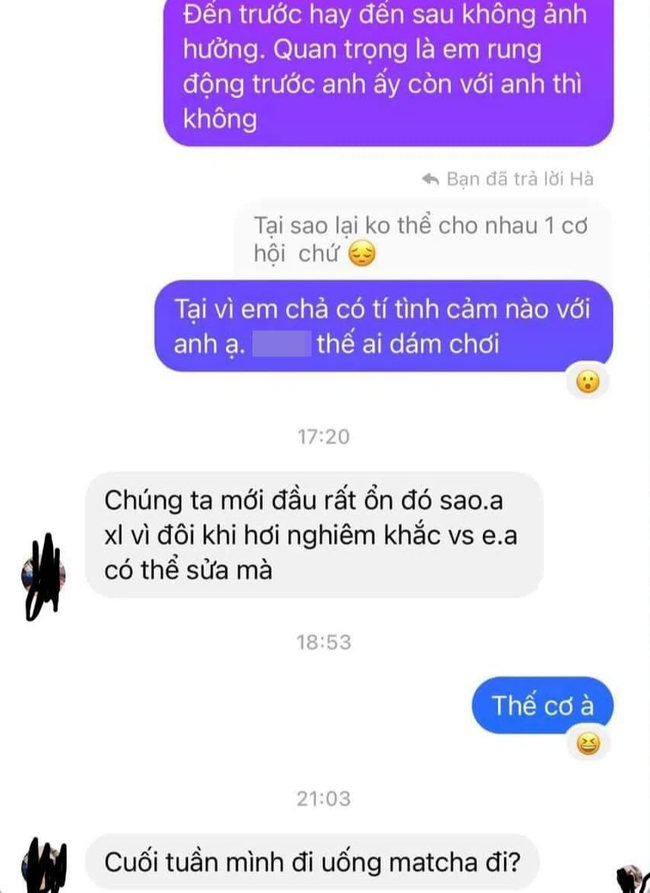Hóa ra, đi tìm "gái bán hoa" bên ngoài anh ta cũng thông báo cho bạn gái một cách công khai, chẳng hề có sự tôn trọng như vậy đấy. Ở tin nhắn tiếp theo, anh ta tiếp tục bày tỏ quan điểm đã yêu thì phải "lên giường" với nhau bất chấp tất cả.