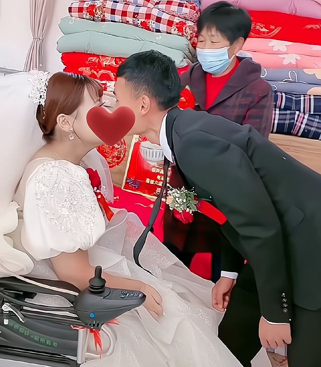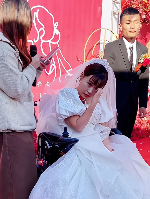 Cô dâu là một người khuyết tật, đôi chân không thể đi lại. Ngày nhỏ, do một trận sốt cao, cô không may bị liệt nửa người và phải ngồi xe lăn.