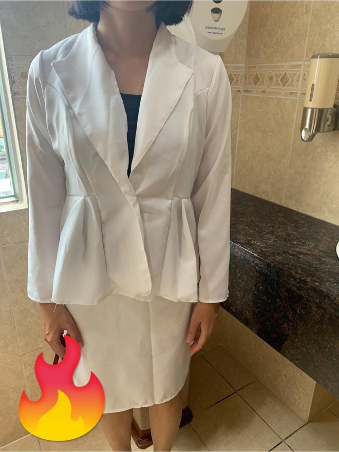 "Shop bảo đây là set đồ giả vest, Sài Gòn đợt này thời tiếng đang nắng nóng, mình nghĩ mặc bộ đồ này đi làm vừa thoải mái, vừa đẹp nên hí hửng đặt mua. Quan trọng mình cẩn thận nhắn tin trao đổi, người bán khẳng định được kiểm hàng trước mới nhận, mình yên tâm lắm vì nghĩ nếu lừa đảo họ sẽ không dám để khách kiểm tra hàng" - Tuyết Nhung kể.