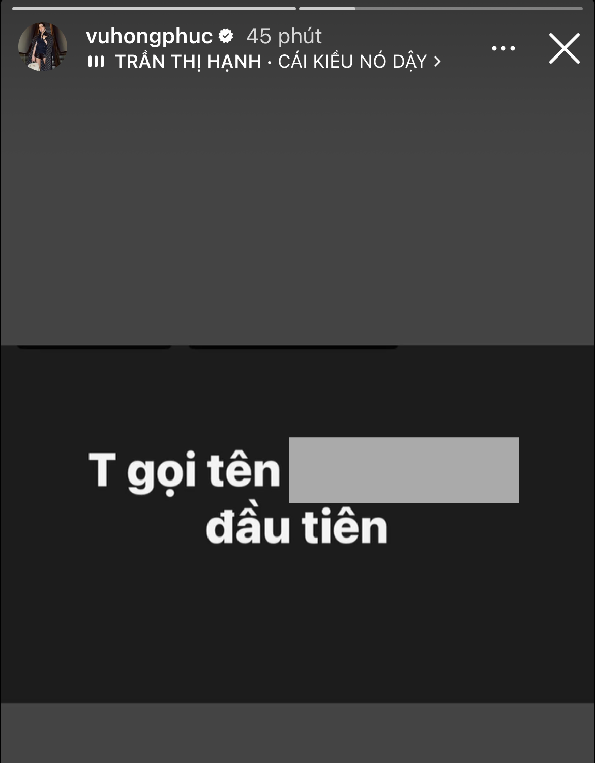 Ở tài khoản Instagram có hơn 72k người theo dõi, cô đăng 2 story, một hình ảnh chồng con và một động thái “dằn mặt” người nào đó tên H. Tuy nhiên hot mom Hà thành nhưng không có chia sẻ nào thêm nên chưa rõ cô đang nhắc đến chuyện gì.
