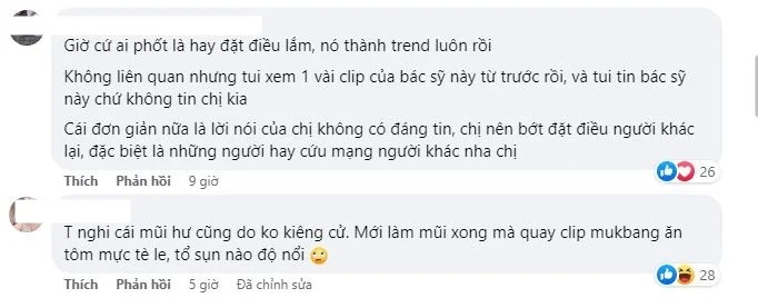 Trong lúc cư dân mạng đang xôn xao thì phía bác sĩ cũng có phản hồi. Đây vốn là một bác sĩ đã có tiếng trước đó và cũng có nhiều người theo dõi trên mạng xã hội. Bác sĩ cho biết Đức Nhân mới là người không thực hiện đúng theo lịch hẹn khi từng gọi điện xin hoãn lịch khám vì "bận quay", "bận ăn tiệc". Ngoài ra, bác sĩ còn tiết lộ rất nhiều bệnh nhân của anh tiêm kích trứng có đau nhưng không đến mức "quằn quại" như trong các video của Đức Nhân. Bác sĩ cũng ẩn ý nghi vấn liệu có phải Đức Nhân đang muốn lấy chuyện con cái ra "câu view" hay vì mục đích thương mại nào khác.