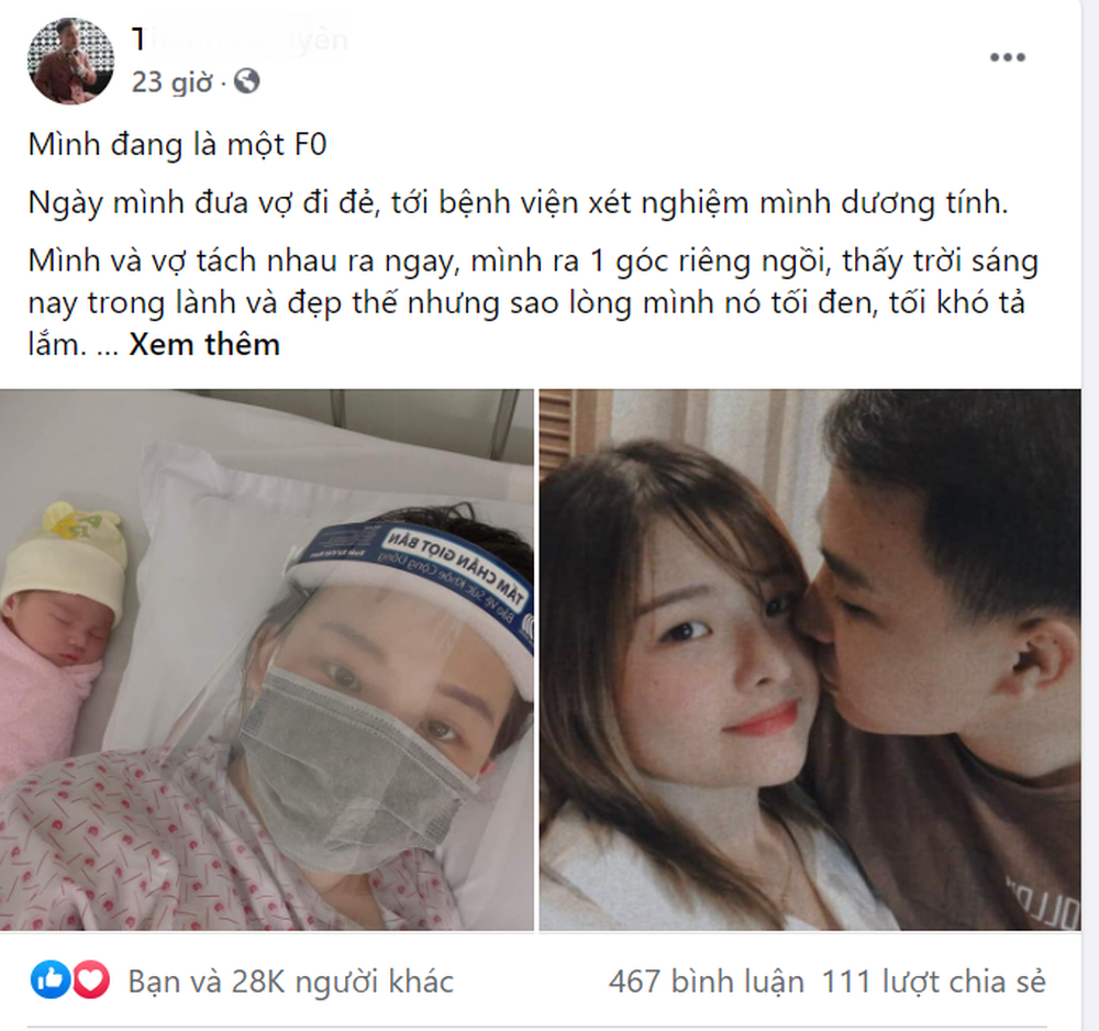 Mới đây, trên một hội nhóm lớn chia sẻ câu chuyện của người chồng trẻ ở TP.HCM bất ngờ phát hiện mình là F0 khi đưa vợ bầu đến viện. Cùng với đó là cuộc chia cách đột ngột khiến người vợ phải ở lại một mình khi đang trong cơn chuyển dạ đau đớn.