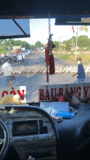 | Cảnh xe khách nhường đường cho đàn vịt |