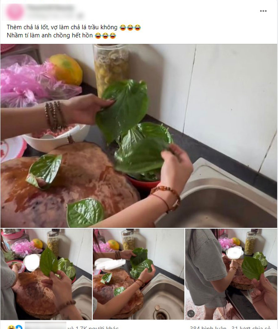 Người vợ đã chuẩn bị sẵn thịt bò ướp sẵn, thớt cuốn và cả "lá lốt" ở khu vực bàn bếp. Tuy nhiên, khi người chồng kiểm tra "lá lốt" bỗng phát hiện có gì đó sai sai. Hóa ra, "lá lốt" mà người vợ sử dụng để cuốn thịt bò chính là... lá trầu không?
