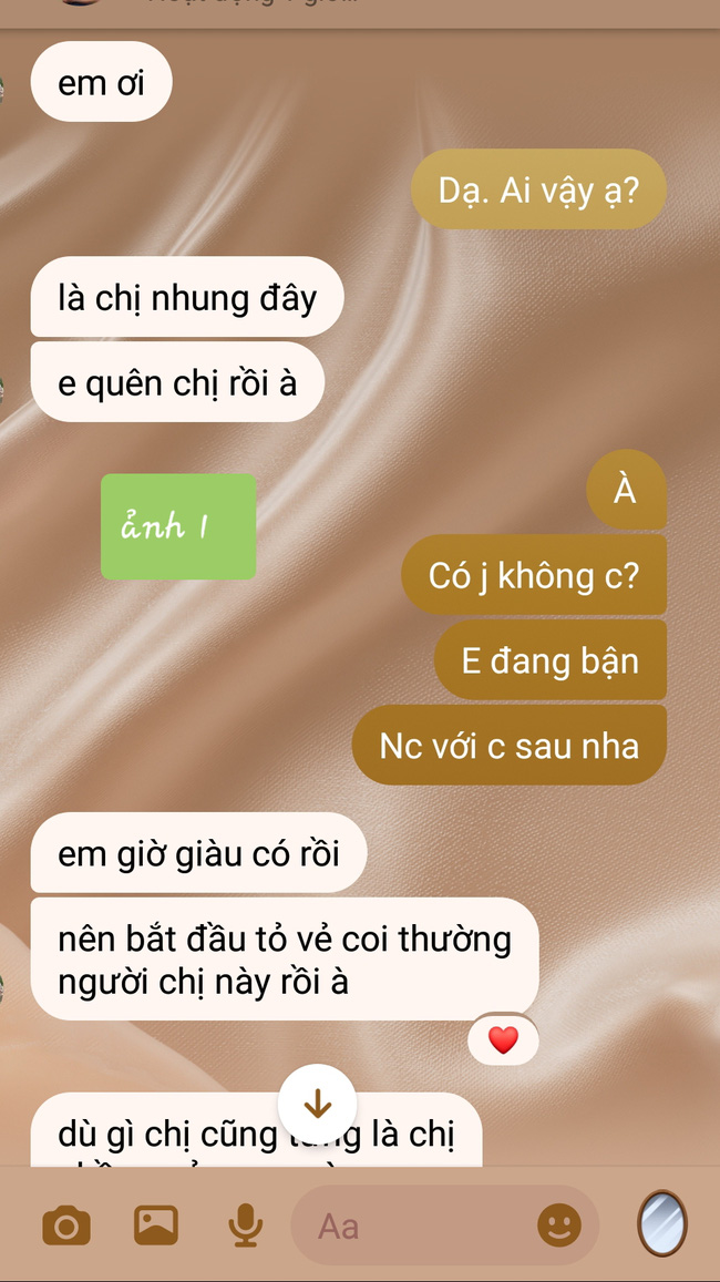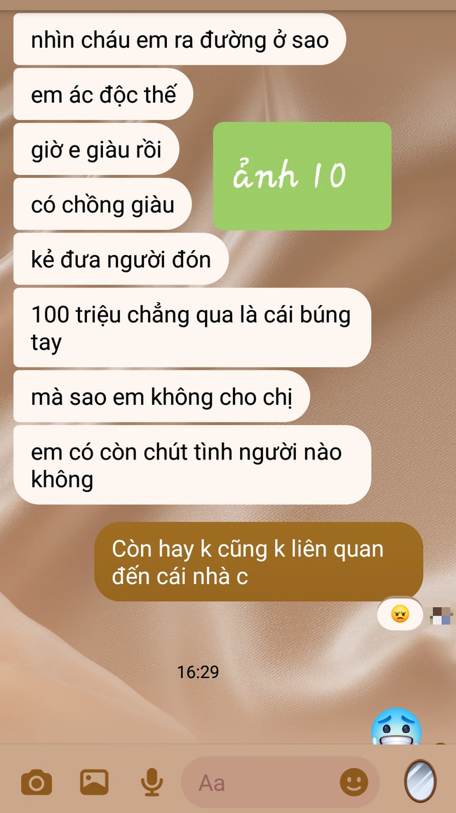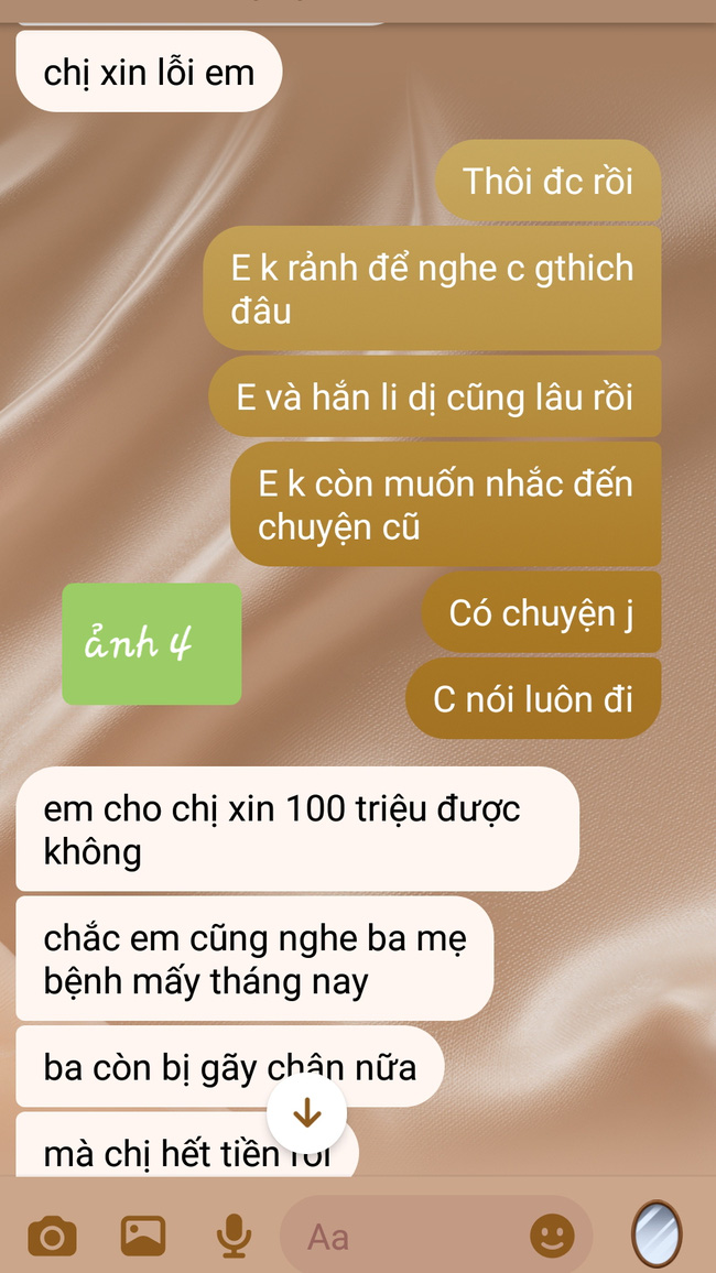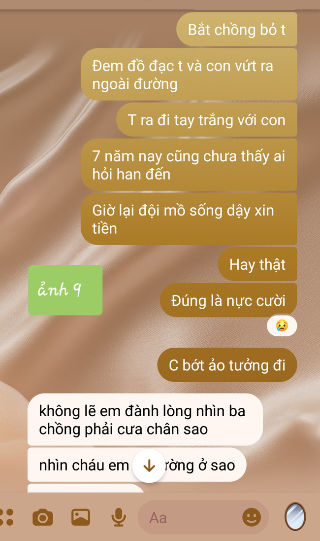 Kèm theo lời tâm sự là ảnh chụp tin nhắn giữa bà chị chồng mặt dày cùng em dâu cũ. Lúc người ta nghèo túng thì đá đi như giẻ rách, giờ thấy người ta giàu có đổi đời thì quay lại xum xoe. Ai cũng cảm thấy những gì gia đình chồng cũ của cô phải chịu là báo ứng.