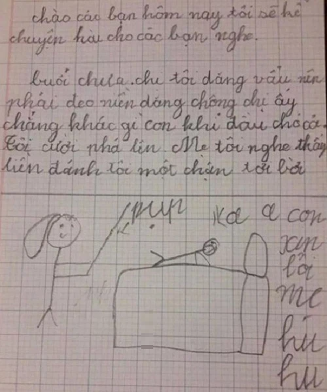 Phía dưới những dòng chữ là hình ảnh nguệch ngoạc người mẹ đang cầm roi vụt còn con thì khóc lóc: "Con xin lỗi mẹ. Hu hu". Không biết hai chị em sau đó có làm hòa với nhau hay không, nhưng cộng đồng mạng thì cười chảy nước mắt. Một số quả quyết cho rằng, ngày thường hai chị em chắc hẳn phải thường xuyên chí chóe với nhau. Và có lẽ đây không phải lần đầu bà mẹ phải ra tay "dẹp loạn".