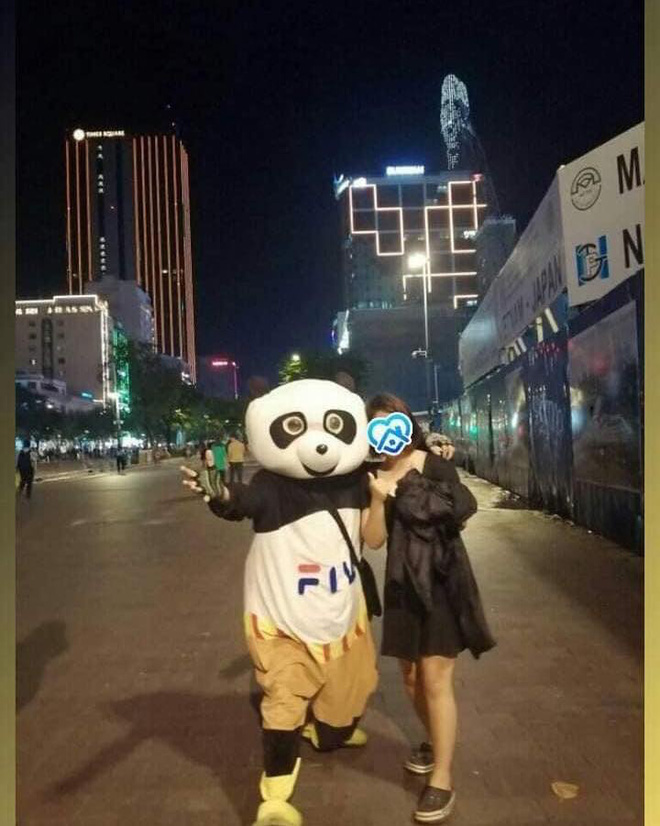 Có một anh mặc đồ thú nhồi bông lại nắm tay bạn em kiểu kéo lại ấy, kêu chụp hình cho anh với bạn một tấm xong thấy tụi em thân thiện, anh ấy lại chụp thêm, em là người cầm máy, điện thoại là của em.