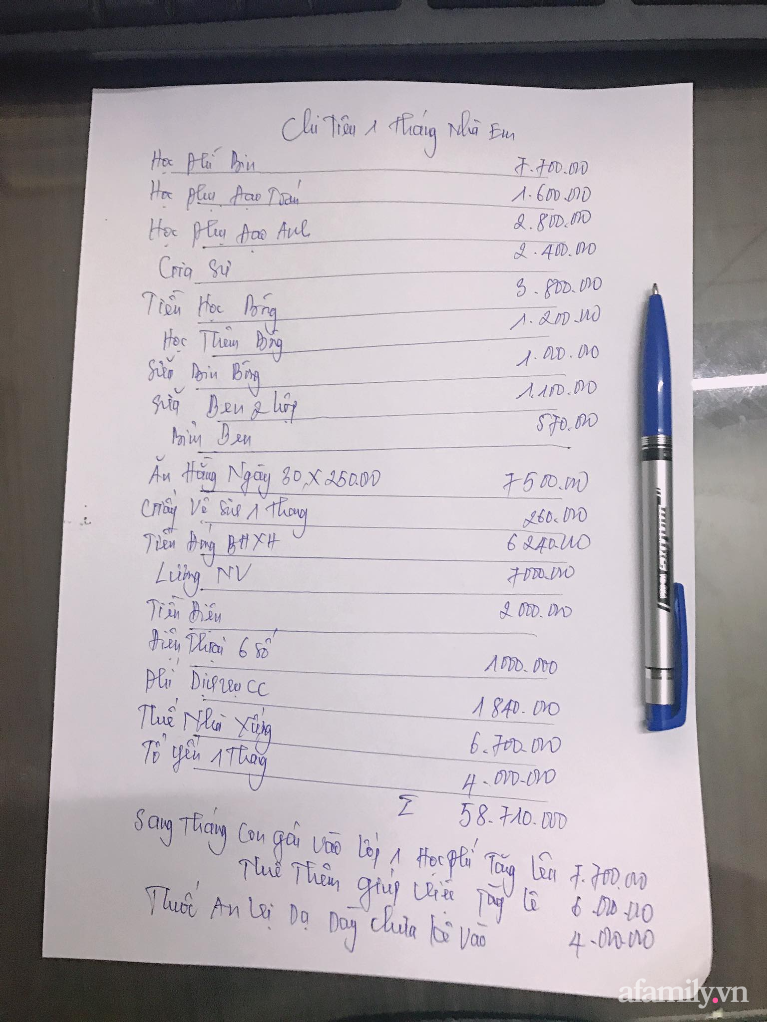 Bản thân "tay hòm chìa khóa" trong gia đình cũng cảm thấy mình không chi tiêu hoang phí bất cứ khoản nào. Những khoản tiền này đều là nhu cầu sinh hoạt thiết yếu, đầu tư học hành cho con và rót vốn vào việc kinh doanh của gia đình. "Ngoài những khoản trên thì thời gian trước khi dịch bùng phát mình còn tổ chức cho gia đình đi picnic, đi chơi dã ngoại nữa. Những cuộc đi chơi như thế cũng tốn vài triệu đồng".