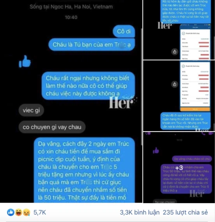 Em vì đang bận nên mắt nhắm mắt mở ấn nhầm từ 5 triệu thành 50 triệu và gửi đi. Đến khi kiểm tra tài khoản thì mới tá hỏa mình đã chuyển một số tiền quá lớn cho người yêu, ấy vậy mà em ấy không hề có phản ứng gì.