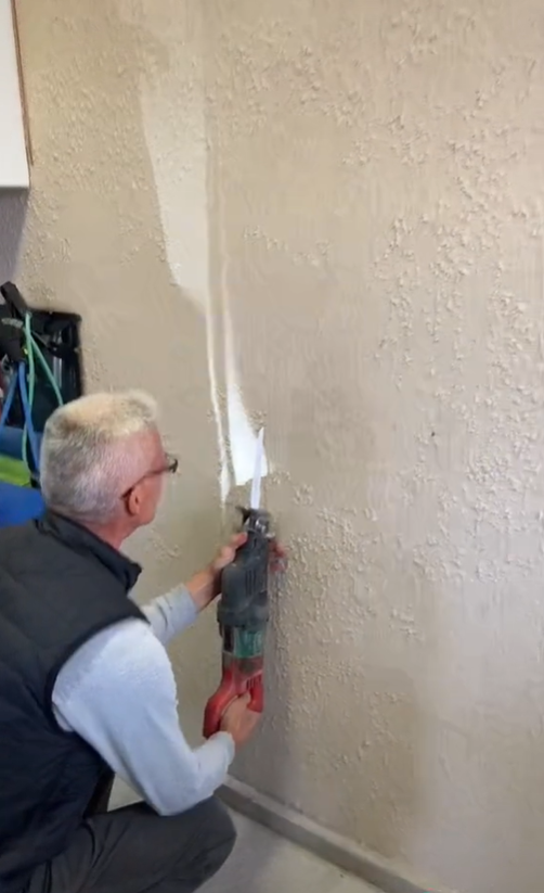 Họ đã phải dùng đến chiếc cưa chuyên dụng để xẻ bức tường. Và cuối cùng bí mật mà nữ TikToker muốn khám phá cũng đã được hé lộ. Quả đúng như dự đoán, căn đằng sau bức tường thực tình có một căn phòng nhỏ. Căn phòng này chứa đầy dụng cụ, thuốc thang, đồ ăn đóng hộp và thực phẩm khô.