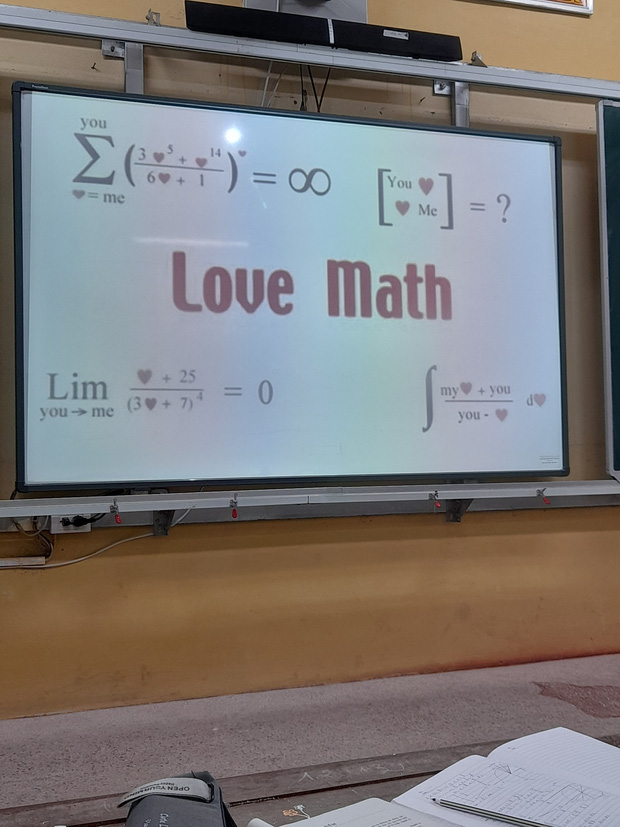 => Suy ra sau 2 phương trình này có thể ngầm hiểu ý "cà khịa" siêu dễ thương của vị giáo viên: Dù ẩn số trái tim nhiều thế nào thì tình cảm của tôi dành cho crush luôn vô hạn nhưng đáp lại chỉ bằng 0 thôi!