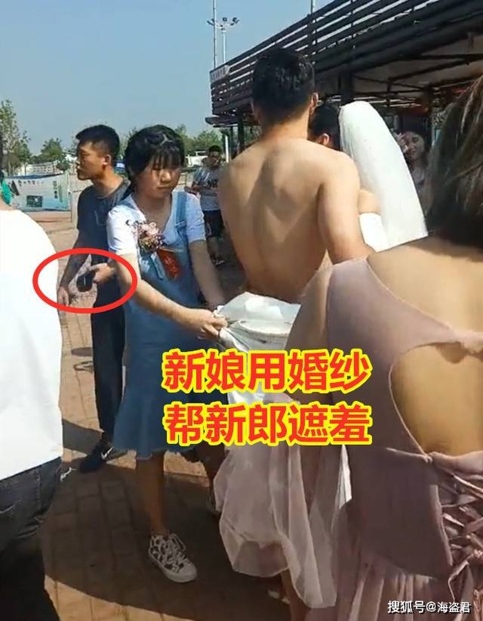 Sự việc diễn ra ngay giữa đường, trước thanh thiên bạch nhật nên cảnh tượng chú rể "không mảnh vải che thân" trông thực sự rất khó coi. May mắn thay, cô dâu đã nhanh chóng ứng biến bằng cách vội vàng che chắn vùng thân dưới của chồng bằng tà váy cưới to rộng của mình.