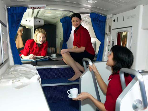 Chắc hẳn ai cũng đã quen với cảnh tượng được ngồi một chỗ trong khi các tiếp viên hàng không thì đi qua đi lại trên máy bay, mở lời chào hỏi, quan tâm và mời bạn dùng bữa. Nhưng sau một khoảng thời gian, sẽ có một tiếp viên khác bắt đầu phục vụ đồ ăn thức uống cho bạn. Và chắc ai cũng sẽ thắc mắc: "Cô tiếp viên xinh đẹp phục vụ tôi vừa nãy đi đâu rồi?"