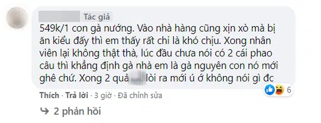 Không chỉ vậy, khi chủ nhân bài đăng tiết lộ giá của món gà nướng ống tre này thì ai cũng "câm nín": tận 549k/con. Đấy là con số thực sự đáng phải suy ngẫm, nhất là khi 1 con gà nướng ở một số hàng quán khác, thậm chí ở những khu ẩm thực lớn, cũng chỉ khoảng 250 - 300 nghìn/con. Nhiều người tếu táo đùa, có lẽ do con gà này có 2 phao câu nên nó đặc biệt hơn.