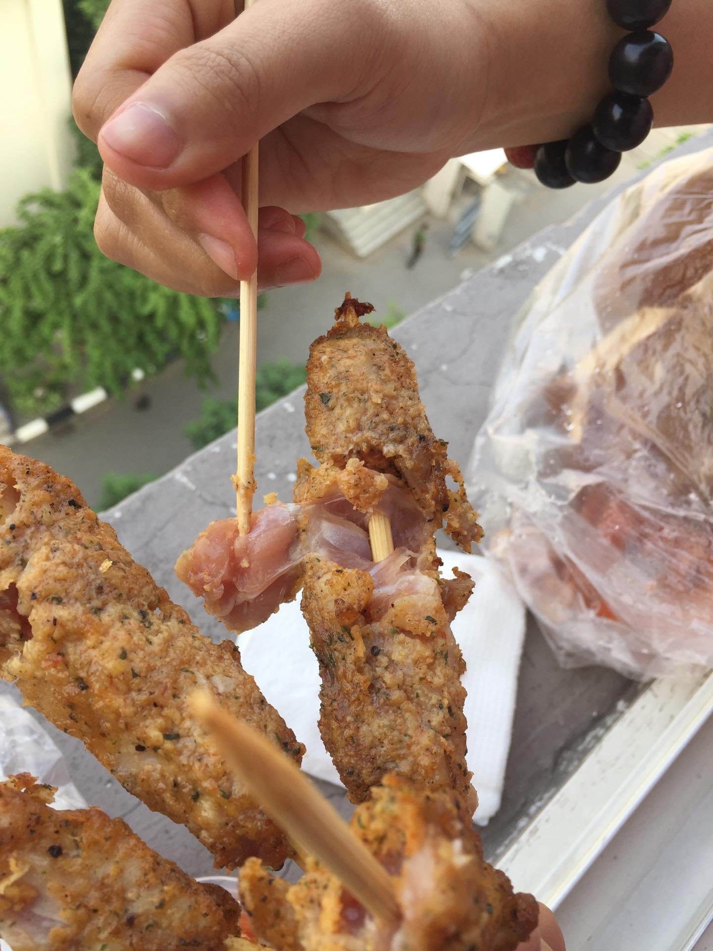 Kết quả là cô nàng đã gặp thịt gà sống đến mức còn nguyên thớ mỡ: "Và không có gì để tổn thương hơn với cái món "gà xiên que" vì nó còn ác mộng hơn những gì em dám tưởng. Tại sao có thể để thịt gà còn sống nguyên, nhìn thấy cả thớ mỡ để giao cho khách? Người ta có chắc là đã đun chưa vậy? Làm ăn thế này thì còn tâm cái gì nữa? Thật sự sau buổi hôm nay em bị ám ảnh và buồn nôn kinh khủng, chưa bao giờ muốn dùng từ "tởm" cho 1 món ăn nhưng phải nói đây là một trải nghiệm kinh hoàng".