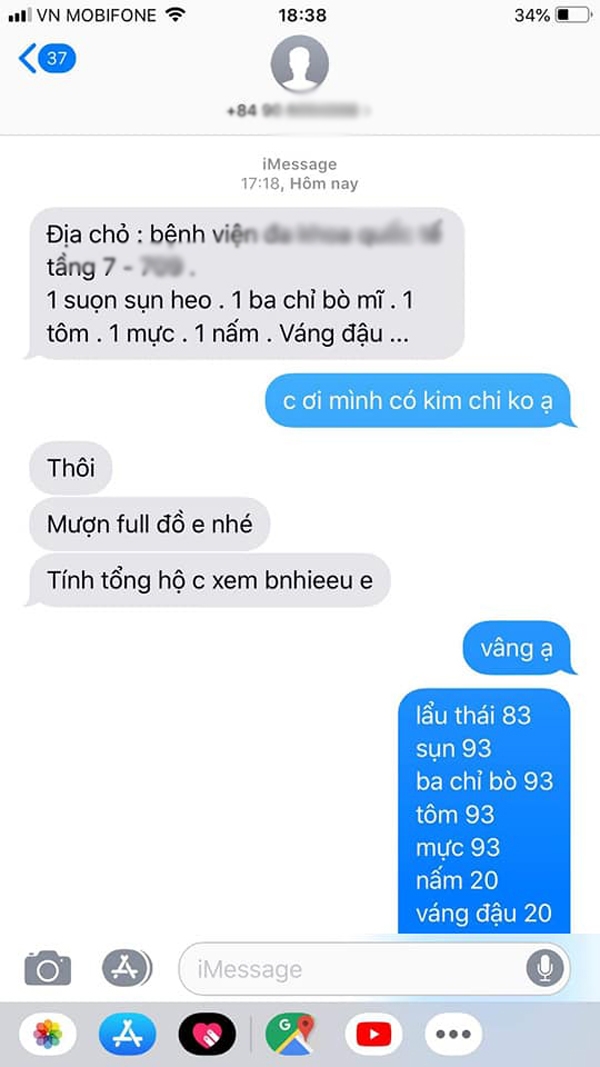 Khách bảo xanh rờn 'chị ấy gọi đồ chỗ khác ngta ship đến rồi, hỏi bệnh viện người ta bảo không cho ăn'. Em vẫn nhẹ nhàng hỏi chị ấy có thể hỗ trợ giúp em được không, vì đồ tươi làm rồi mà cho ra ngoài trời sẽ không bán được nữa, nếu là đồ đóng hộp hoặc quần áo em sẽ báo ship về ngay ạ. Chị ấy bảo là chị ấy mới gọi điện báo, chứ chưa chốt'.