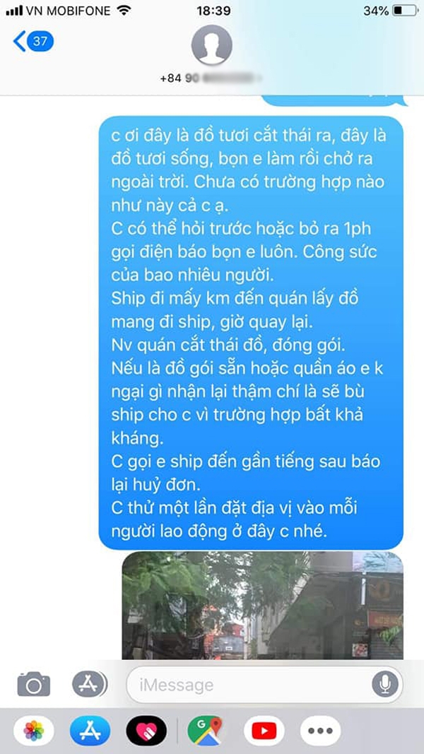- Lấy đâu ra chuyện yêu cầu người ta ship đồ rồi hủy kèo trắng trợn thế, chưa kể là đồ ăn tươi, đâu phải thích hủy là hủy?