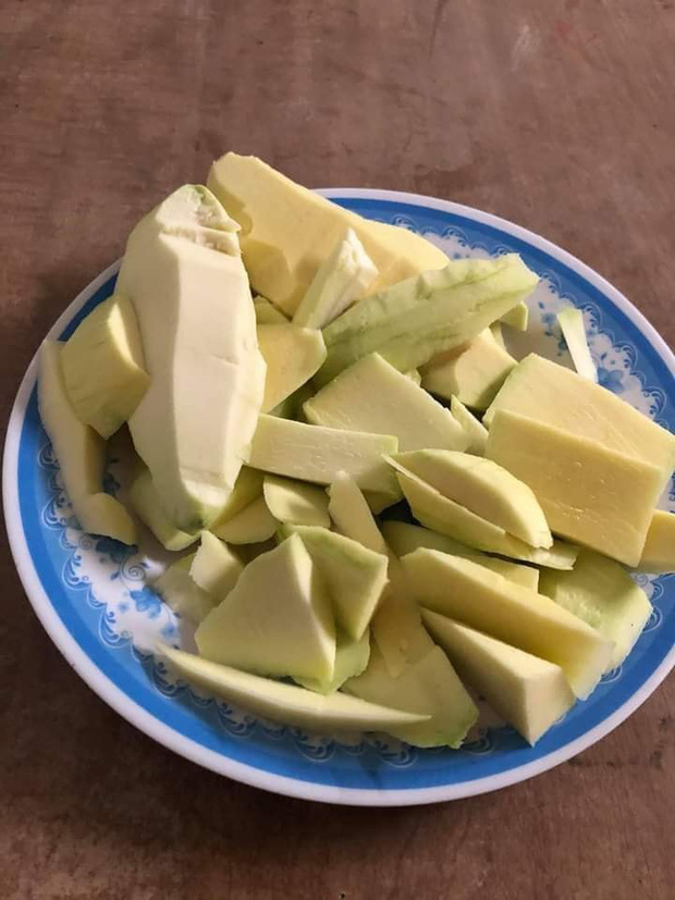 Theo đó, đĩa xoài bị cắt thành từng khúc một cách rất "cục súc", mỗi miếng là mỗi hình thù khác nhau. Nhát dao thì chẳng dứt khoát, nhìn một phát cũng biết cô gái này phải chật vật thế nào mới gọt xong trái xoài.