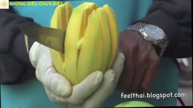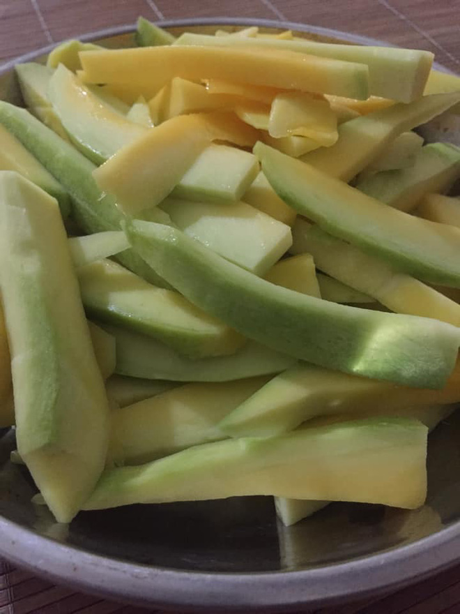 - Mới nhìn hình tao tưởng tượng ngay đến dĩa xoài mình vừa gọt lúc nãy! Xin lỗi chứ cắt vậy là đẹp lắm rồi á!