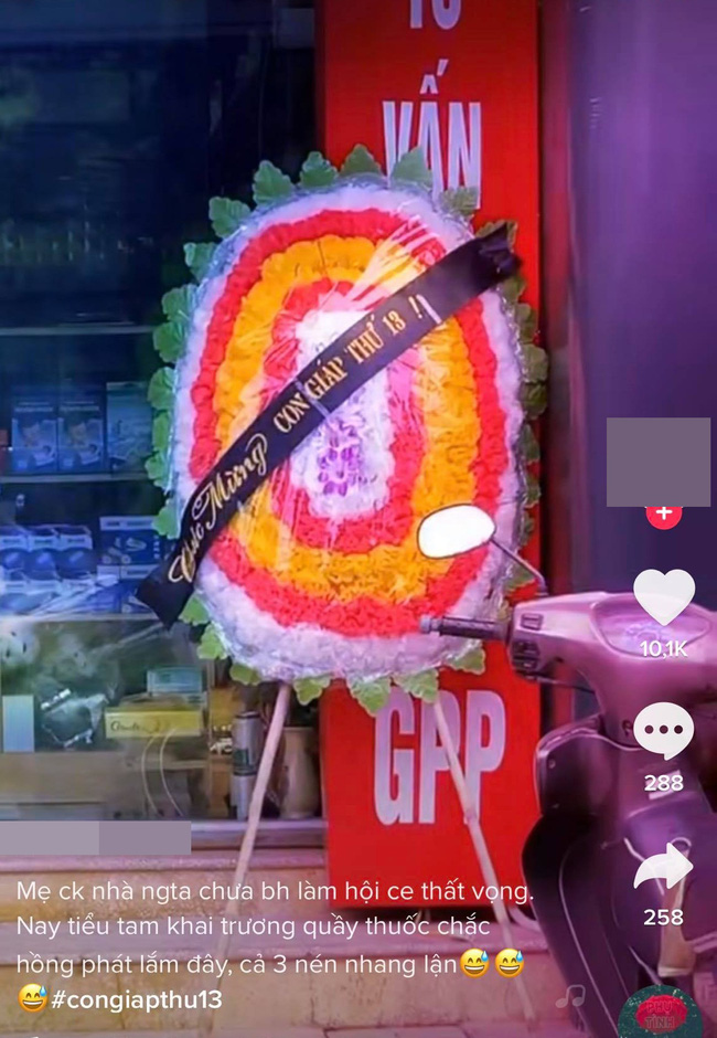 Cụ thể, đoạn clip nổi tiếng ghi lại cảnh một cửa hàng đang treo băng rôn khẩu hiệu mừng khai trương tưng bừng mà lại bỗng dưng xuất hiện chiếc vòng hoa thường dùng trong đám tang. Thế nhưng, khi nhìn gần thì thông điệp treo trên đó lại càng khiến người ta phải sốc nặng: "Chúc mừng! Con giáp thứ 13".