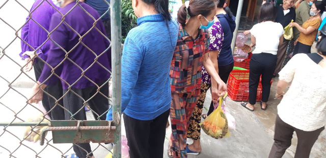 Có mặt tại gia đình anh Nguyễn Danh Trung lúc sáng sớm, hàng chục người dân trong thôn đến để mua giúp toàn bộ thực phẩm, nhiều người đến muộn không còn để mua.