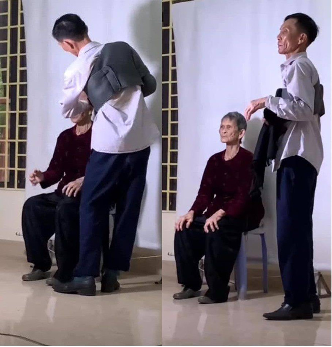 Trong bức hình ghi lại, cụ ông đang cẩn thận tỉ mỉ chính lại mái tóc của bà trước khi chụp ảnh chân dung. Hành động tuy nhỏ nhặt nhưng tình cảm và tự nhiên của cụ ông khiến ai chứng kiến cũng cảm thấy ấm lòng và nhiều người còn mong sau này chỉ cần được như vậy là đủ.