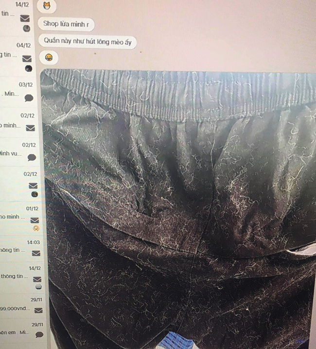 Câu chuyện trên được kể lại bởi một nhân viên trực shop bán quần áo. Trong khi đang trực tư vấn bán hàng online thì nhận được một tin nhắn phản hồi sản phầm khá giật mình. Vị khách nam đã la lên rằng "shop lừa đảo", trong lúc nhân viên đang bối rối thì anh chàng cũng nói luôn lý do. Hóa ra, sau khi mua chiếc quần dài màu đen của shop, về nhà hí hửng mặc lần đầu thì chàng trai ấy đã "ăn quả đắng" với một đống lông mèo dính chi chít trên quần!