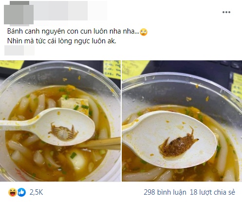 Trải nghiệm khi đi đi ăn uống ở bên ngoài luôn rất "muôn hình vạn trạng" và để lại trong lòng thực khách những cảm xúc khó quên. Mới đây, có anh chàng hào hứng đi ăn món bánh canh ghẹ, và theo như tưởng tượng ban đầu thì đã chắc mẩm chàng đã nghĩ rằng sẽ có chiếc càng to đùng và phần thịt ngập ngụa cho bõ cơn thèm. Nhưng đến khi vào ăn, chàng ta đã được phục vụ một con ghẹ thật, nhưng lại là ghẹ cỡ siêu mini đến mức khó tin là thật.