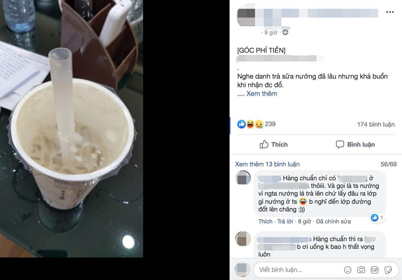 Theo đó, N.T kể lại: "Nghe danh trà sữa nướng đã lâu nhưng khá buồn khi nhận được đồ. Hoàn toàn không thấy lớp nào gọi là nướng cả, thôi thì mình cứ coi như là lớp đó bị tan đi. Nhưng uống vào vị nhạt không chịu được. Dù là 100% đường, trân châu hạt nát hạt sượng, cảm thấy phí miệng quá! Có lẽ thôi lần sau cạch món này."