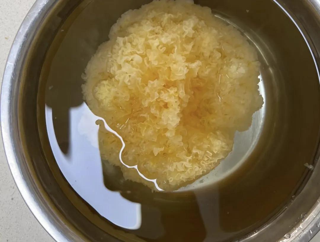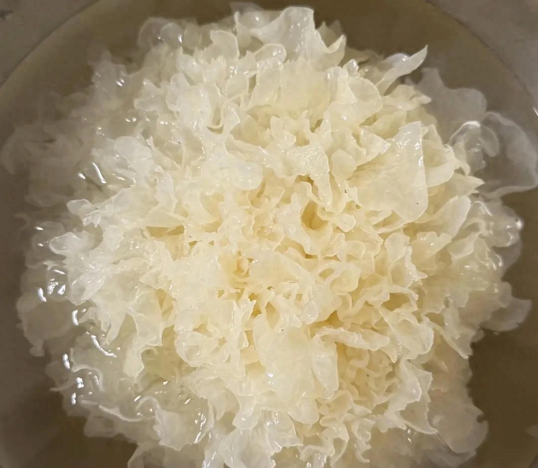 Ngâm nấm tuyết trong nước lạnh 2–3 tiếng cho mềm và nở đều. Sau đó cắt nhỏ để dễ ra gel. Song song, rửa sạch bách hợp, hạt sen, ý dĩ và ngâm nước cho mềm.