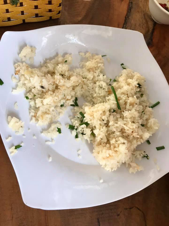 Ngay lập tức, bài đăng của tài khoản Facebook này nhận được sự quan tâm lớn từ cộng đồng mạng. Xem ảnh và clip, có thể thấy đúng là dĩa cơm chiên hải sản này chẳng có gì khác ngoài… cơm và vài cọng hành. Tìm "đỏ con mắt" cũng chẳng thấy bóng dáng hải sản ở đâu.