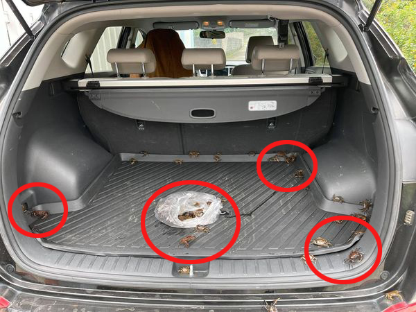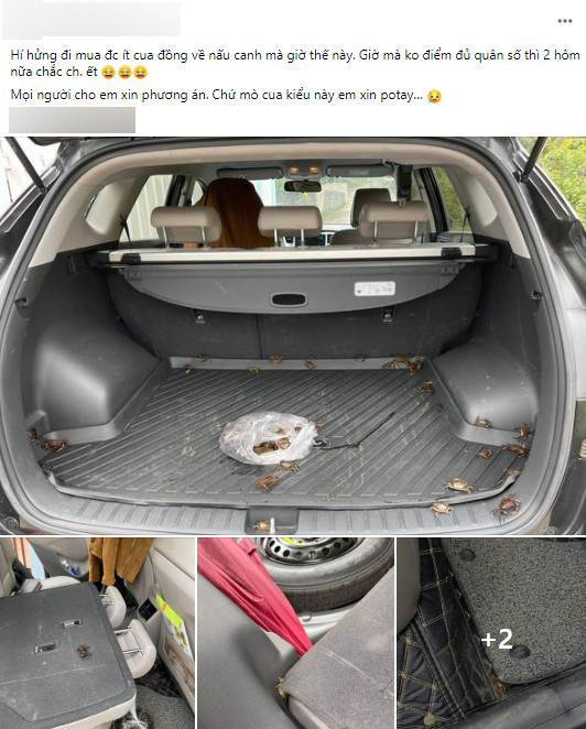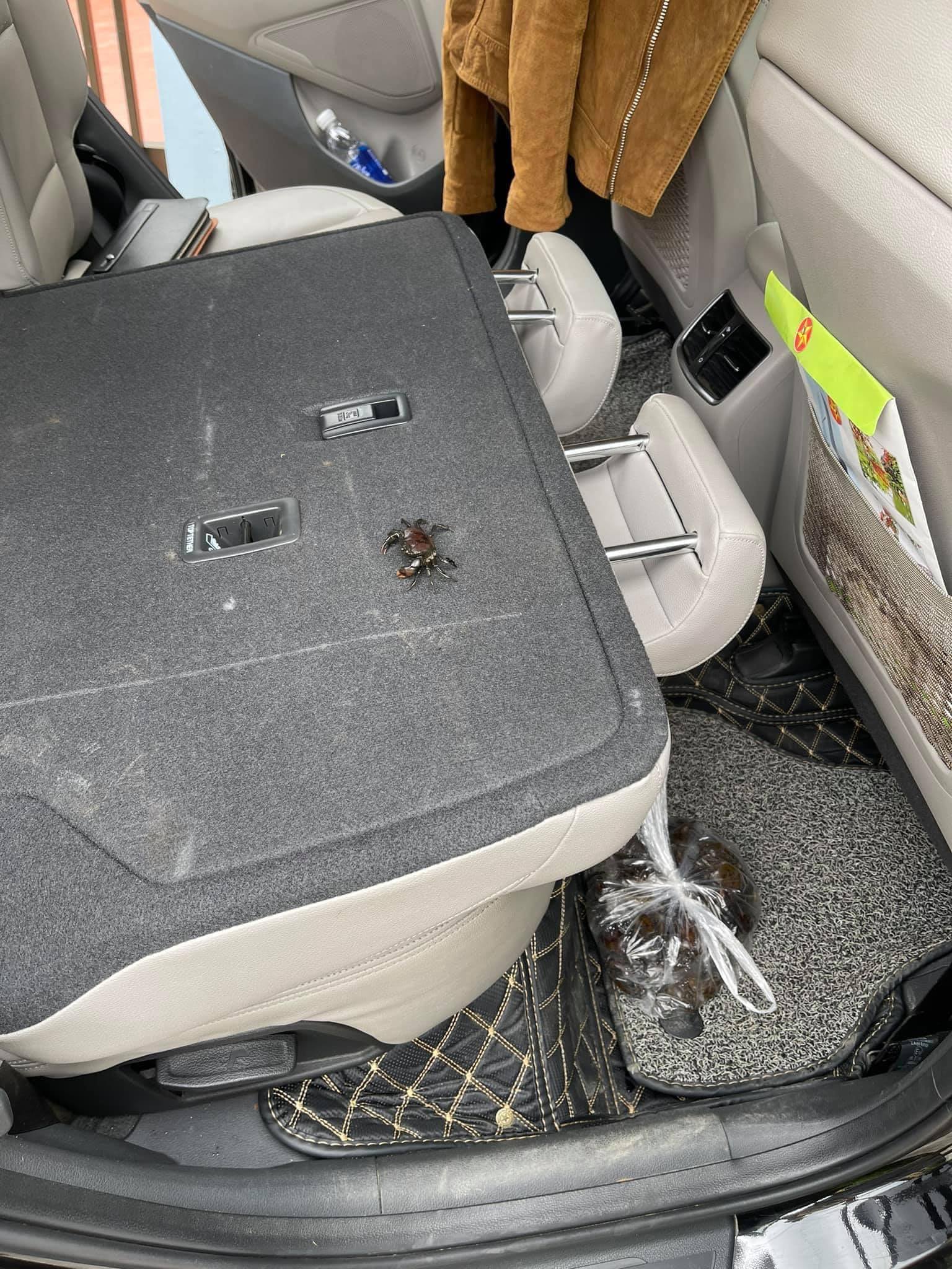 Tuy nhiên do người bán hàng buộc túi lỏng lẻo, người mua thì bất cẩn, thế là trong hành trình tiếp theo, số cua trong túi bóng đã bò hết ra ngoài. Tai hại hơn, chúng bò khắp xe và lẩn trốn vào mọi ngóc ngách trong ô tô.