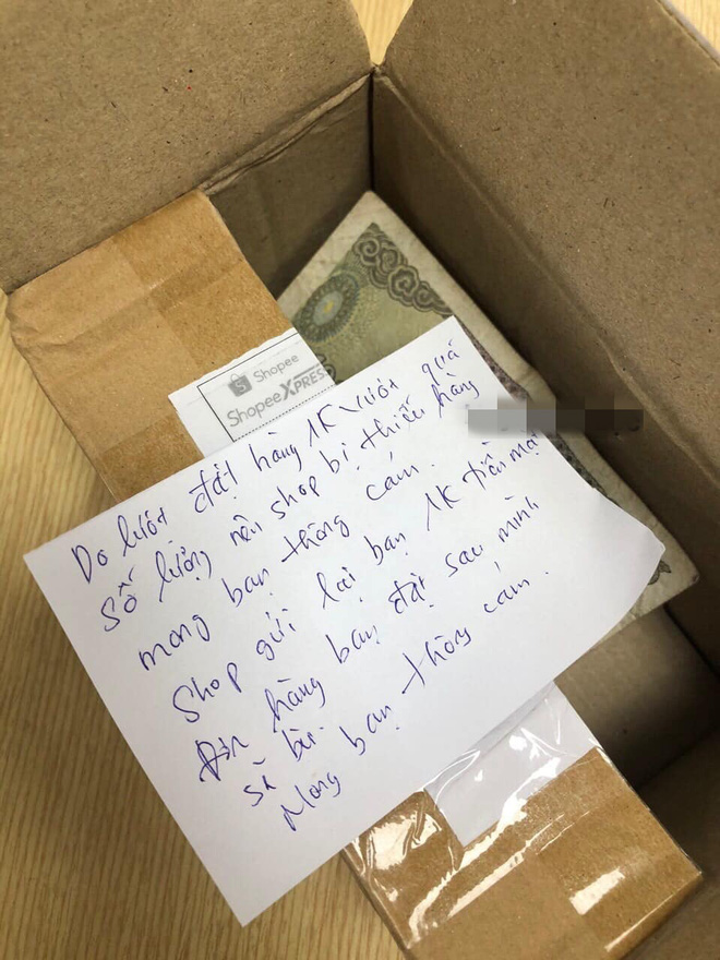 Cụ thể, cô gái này đã đặt đồ với giá sale 1 nghìn đồng. Tới ngày nhận hàng, cô nàng hí hửng "khui" hộp thì đã vô cùng sốc với cảnh tượng trước mắt. Hàng đâu chẳng thấy, chỉ có tờ một nghìn đồng và mảnh giấy bên trong với nội dung: