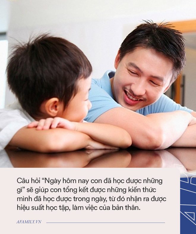 Hãy hỏi: "Ngày hôm nay của con thế nào?" và lắng nghe những cảm xúc vui buồn của con, nghe con chia sẻ về những câu chuyện, sự kiện xảy ra trong ngày.