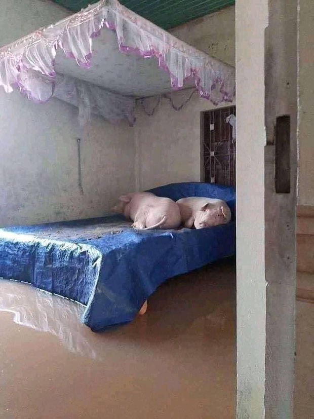 Giữa đợt lũ lụt lịch sử, những hình ảnh về cuộc sống hiện tại của người dân miền Trung được chia sẻ rộng rãi trên mạng xã hội khiến ai cũng không khỏi xót thương. Trong đó, loạt hình ảnh những chú heo được ngủ trên giường nhận được sự quan tâm rất lớn của cộng đồng mạng.