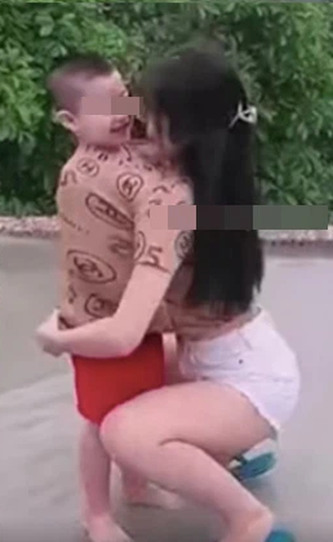 Theo đó, đoạn clip ngắn ghi lại cho thấy, cô gái trẻ mặc áo phông, quần ngắn trên đầu gối và vui đùa cùng 1 bé trai khoảng chừng 4-5 tuổi. Khi đang nô đùa, cô gái này bất ngờ cúi xuống kéo chiếc áo của mình ra, trùm lên đầu cậu bé.