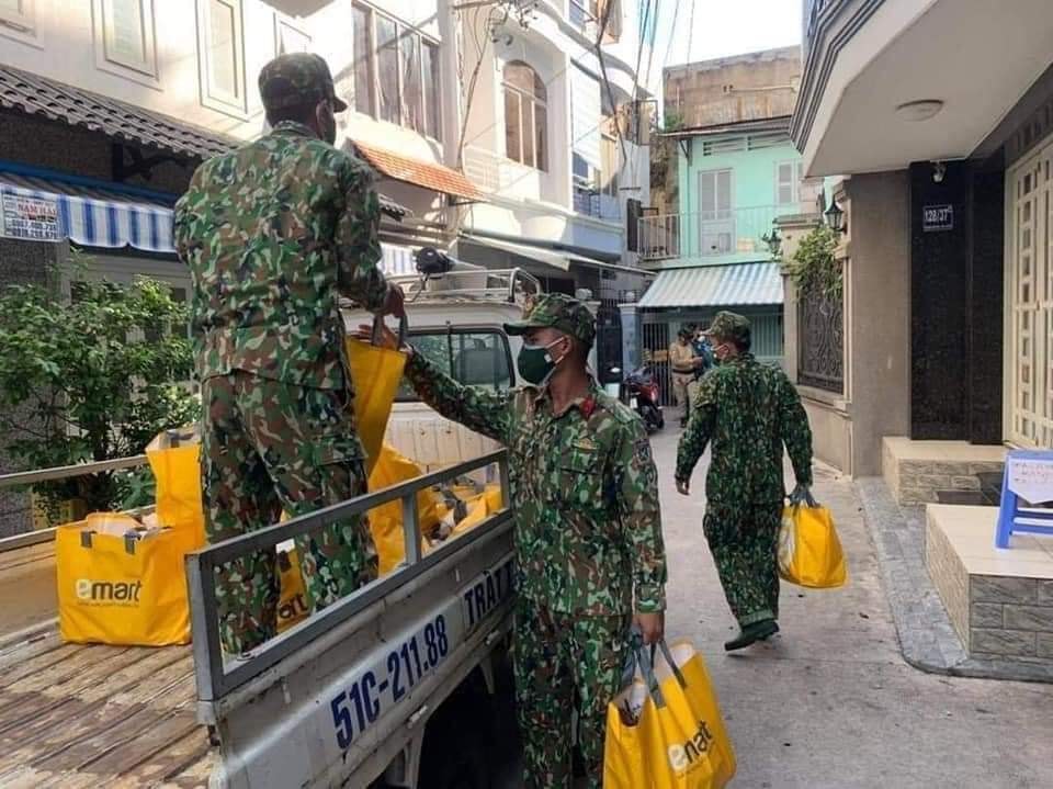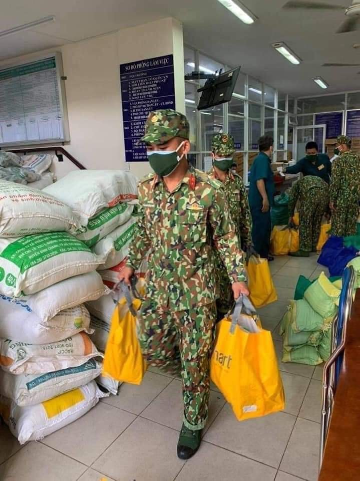 Được biết từ ngày hôm qua, lực lượng quân y, quân đội đã được điều động đến hầu hết các địa phương ở TP.HCM. Những hình ảnh dưới đây được chụp lại khi lực lượng bộ đội tiếp tế cho người dân, đúng như câu nói "tình quân-dân như cá với nước". Những bức hình nhanh chóng thu hút sự chú ý của cộng đồng mạng.